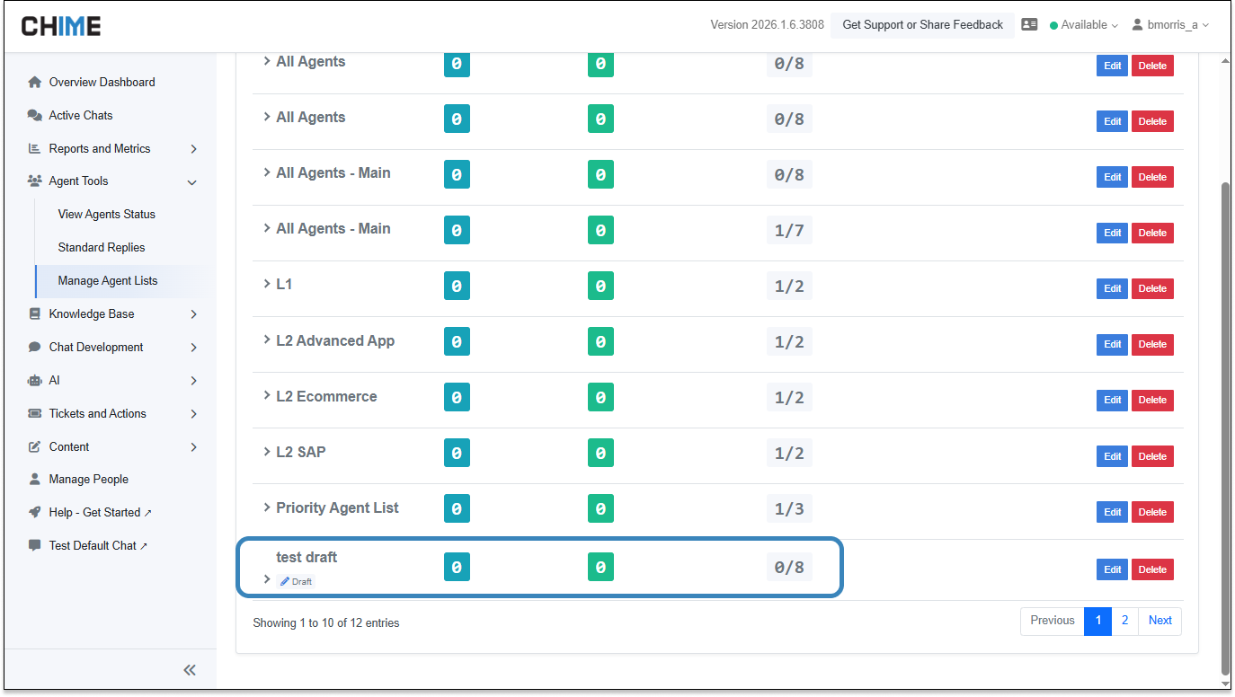 Agent Lists – Draft Support – Managers can save agent lists as drafts before publishing, with clear visual indicators to distinguish drafts from published lists.