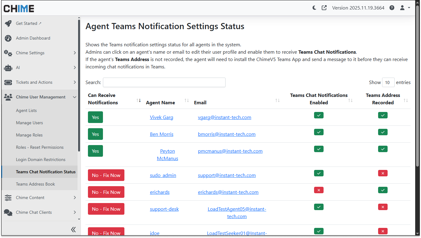 Why it’s useful: Makes it easier to diagnose notification issues, confirm agent readiness, and support onboarding for Teams-based chat workflows.